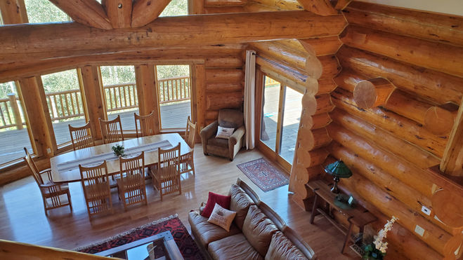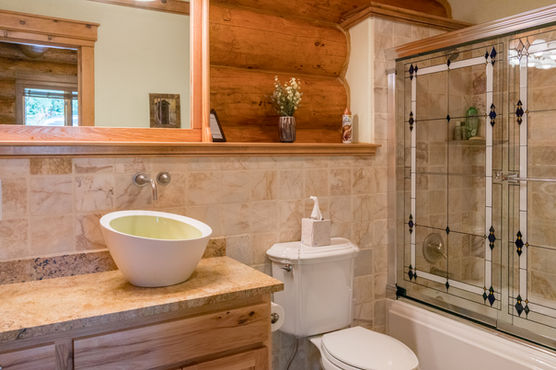Cozy yet large log bedroom with full ensuite bathroom and walk in closet.